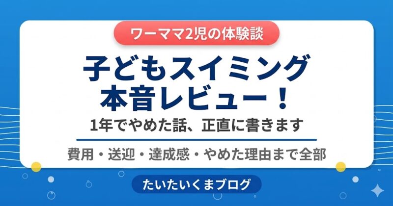 5歳でスイミングを始めた長男、1年でやめました。理由は「寒い・自由に泳ぎたい」。次男は肌が弱く通えず。2児ワーママがスイミングのリアルな体験談を正直にまとめました。 -
